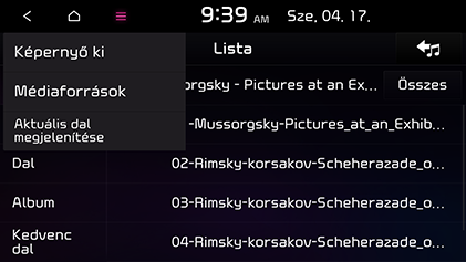 ] > Dal az előadóhoz vagy a Dal az albumhoz gombot a listamenü képernyőre való ugráshoz. -