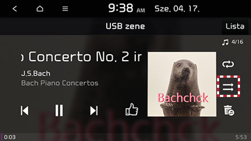]: A fájlokat egymás után lejátssza a Előadó, Dal, Album vagy Kedvenc dal lehetőségek között.