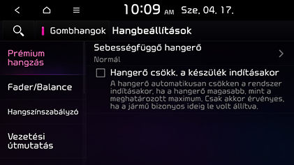 Sebességfüggő hangerő: Automatikusan beállítja az audió hangerejét a jármű sebességének megfelelően.