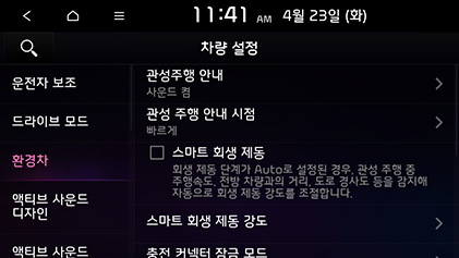 SETUP > 차량 > 환경차를 누르십시오.