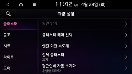 SETUP > 차량 > 클러스터를 누르십시오.