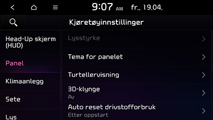 Lysstyrke: Stiller inn lysstyrken for instrumentpanelet.