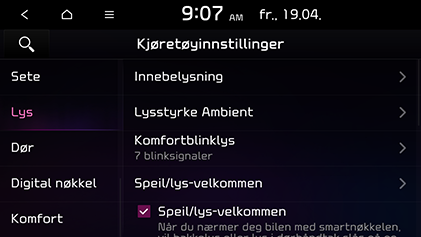 Ved døropplåsing: Velkomstspeilet og lyset aktiveres når døren låses opp.