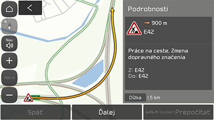 Zobrazuje sa, keď sú na trase alebo blízko aktuálnej polohy k dispozícii dopravné informácie.