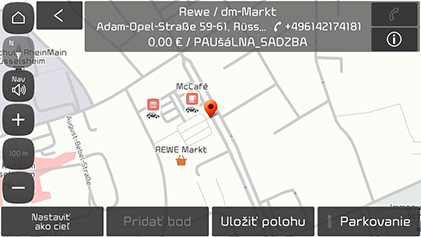 Parkovisko môžete nastaviť ako cieľ pomocou rôznych spôsobov vyhľadávania.
