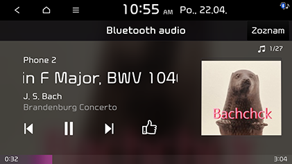 Hudba uložená v mobilnom telefóne môže byť v aute prehraná pomocou streamingu Bluetooth audio.