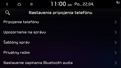Táto ponuka obsahuje obrazovku pripojení Bluetooth.