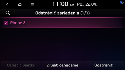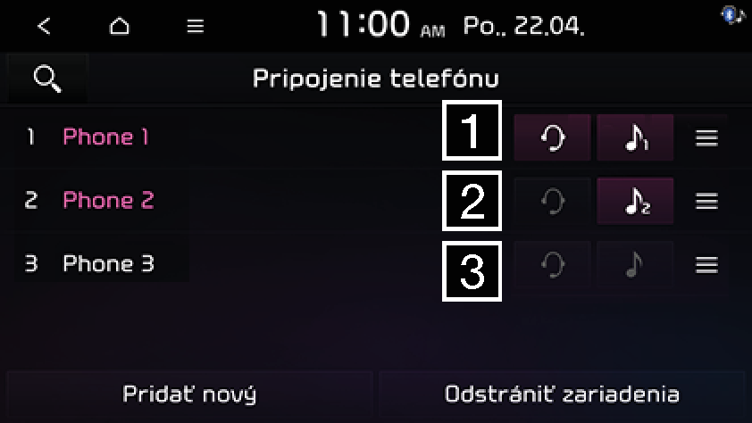 Možno spárovať až 6 mobilných telefónov. Ak chcete spárovať nový telefón a už máte spárovaných 6 mobilných telefónov, je nutné najskôr vymazať jeden z predtým spárovaných telefónov.