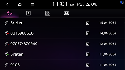Ak chcete počas telefonátu v režime volania z mobilného telefónu želáte prepnúť hovor do režimu volania hands-free, stlačte tlačidlo Použiť hands-free na obrazovke alebo stlačte a podržte tlačidlo [s] na volante. Hovor sa prepne na funkciu hands-free automobilu