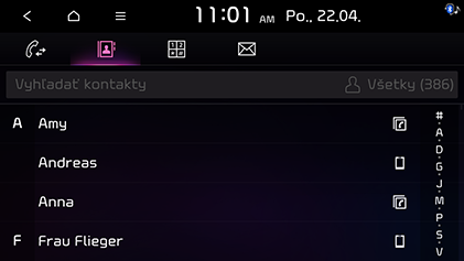 ] na obrazovke telefónu. Na obrazovke sa zobrazia kontakty.