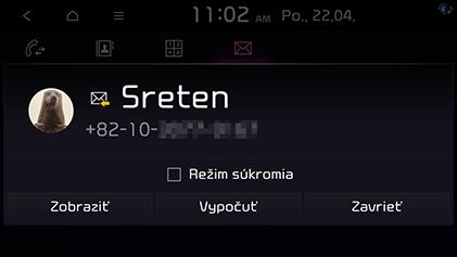 Ak je dostupná služba identifikácie volajúceho, zobrazí sa telefónne číslo volajúceho.