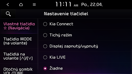 Vlastné tlačidlo ★ (volant) (ak je vo výbave): Priradí funkciu vlastnému tlačidlu n diaľkového ovládania na volante.