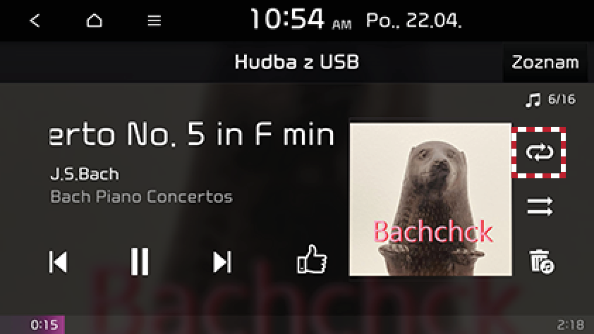 Aktuálne prehrávaný súbor sa prehráva opakovane.