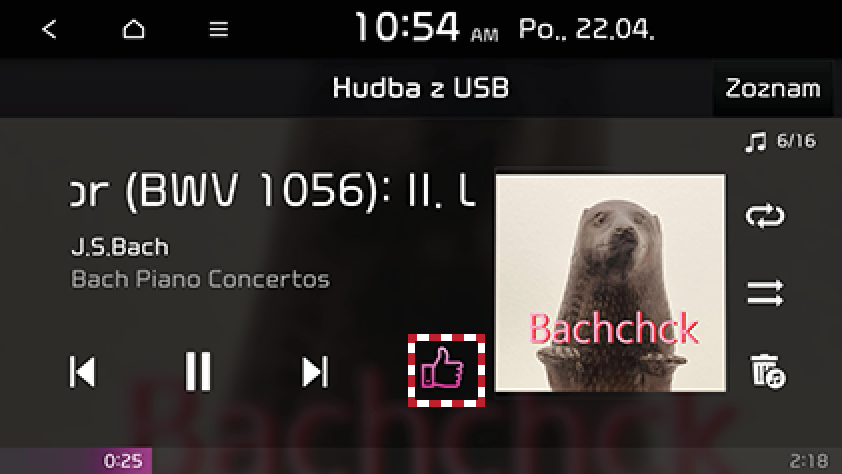 Ak potiahnete požadovanú časť na ukazovateli alebo sa jej dotknete, prehrá sa hudba z vybranej časti.