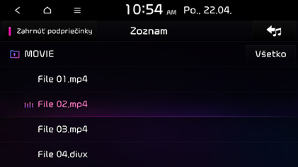 Ak je zobrazený požadovaný súbor, stlačením tlačidla ENTER/FILE/TUNE ho prehráte.