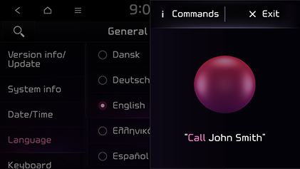 Stlačte tlačidlo na volante označené [k]. Systém počká na váš príkaz a zobrazí zoznam dostupných príkazov na obrazovke. Ak chcete používať viac rôznych príkazov, ako poskytuje systém, stlačením tlačidla Aktivovať aktivujte službu Kia Connect.
