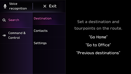Ak sú zobrazené výsledky Vytáčania alebo Vyhľadávania cieľa, tento príkaz sa používa na manuálne vyhľadávanie namiesto vyhľadávania pomocou hlasového príkazu. Po zadaní tohto príkazu sa ukončí rozpoznávanie hlasu. |