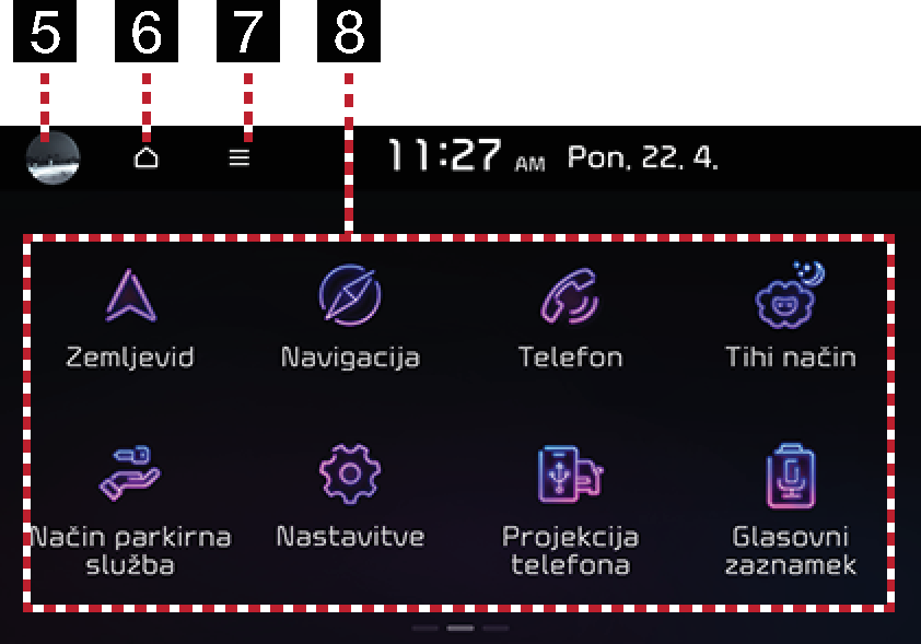 Če se med vožnjo dotaknete zaslona, vam to lahko preusmeri pozornost in povzroči prometno nesrečo. Zaradi varnosti zaslon uporabljajte po tem, ko ste se ustavili.