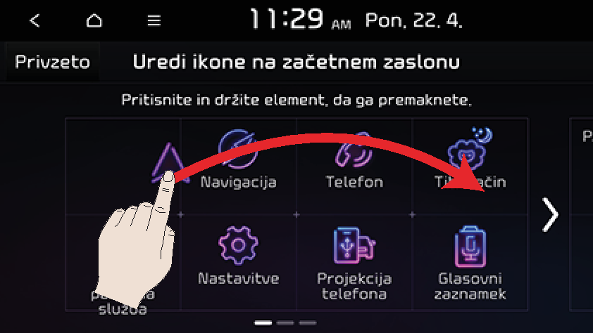 ] > Uredi ikone na začetnem zaslonu.
