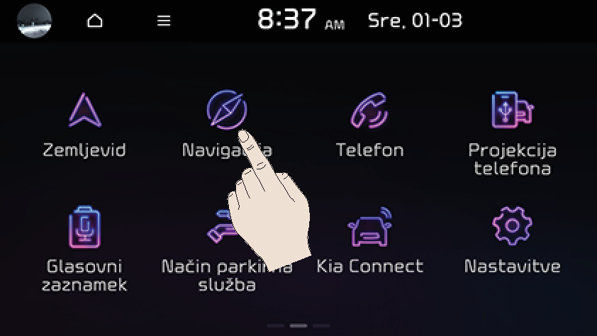 KIA LIVE (če obstaja): odpre meni KIA LIVE.