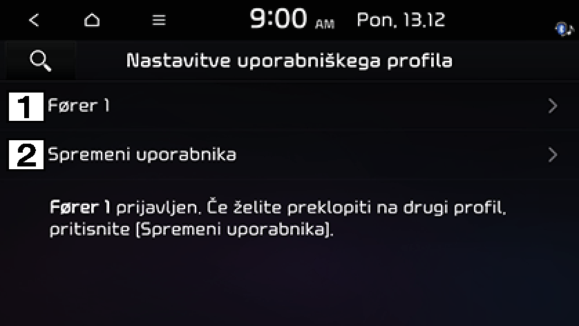 Izbriši profil Voznik 1/Izbriši profil Voznik 2: izbriše profil trenutnega voznika.