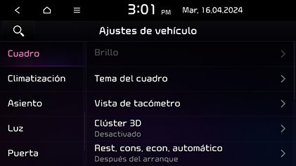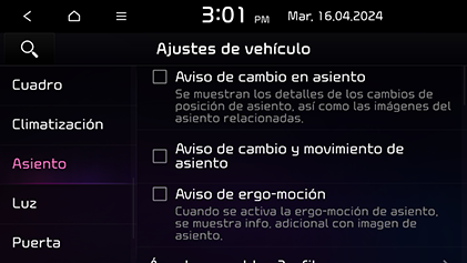 Calefacción automática: la temperatura seleccionada de calefacción del volante o el asiento se ajusta automáticamente. Marque los elementos que desee configurar.