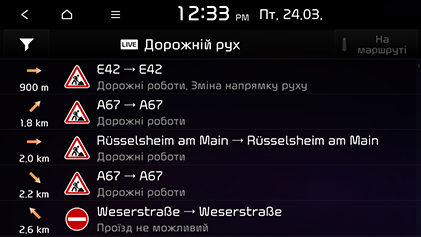 Інформація про поточну ситуацію/події на дорогах в основному відображається в списку дорожньої інформації. Ця функція може бути недоступною залежно від умов.
