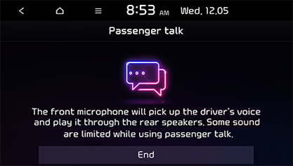Передній мікрофон приймає голос водія та відтворює його через задні динаміки. Для вимикання натисніть Завершити.