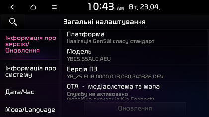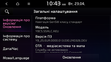 Можна переглянути версію програмного забезпечення, версію прошивки, версію додатка навігації, версію карти та ідентифікатор пристрою.