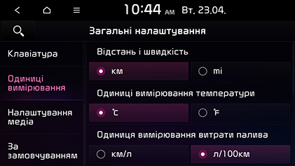 Натисніть SETUP > Загальні > Одиниці вимірювання.