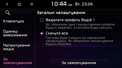 Можна скинути налаштування поточного профілю або всієї системи. Оберіть потрібний елемент та натисніть За замовчуванням > Так.