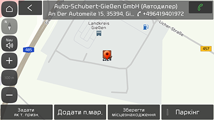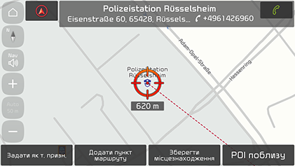 Пошук потрібних точок інтересу. Для пошуку можна ввести ключові слова або використовувати точки інтересу поблизу, карту, список попередніх місць призначення тощо.