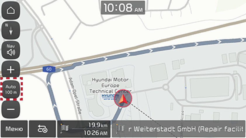 Масштаб карти встановлюється автоматично відповідно до швидкості автомобіля, класу дороги та відстані керування по маршруту. |