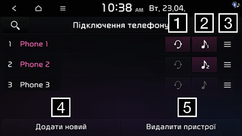 Можна змінити пріоритет поєднаних пристроїв для підключення до системи. Натисніть SETUP > Підключення телефону > Підключення телефону.