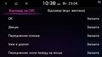 Можна вибрати потрібне повідомлення в Відповіді на СМС або Відповіді (відх. виклики).