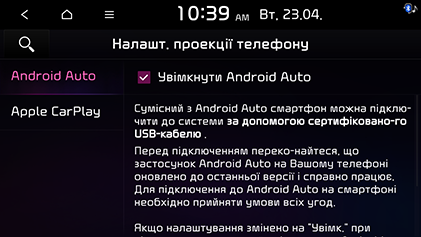 Увімкнути Android Auto/Увімкнути Apple CarPlay: вмикання проекції телефону. Ви можете керувати проекцією телефону через цю систему.
