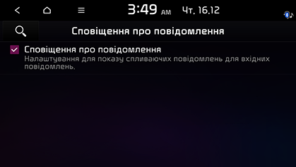 Можна встановити сповіщення для повідомлень. Натисніть SETUP > Підключення телефону > Сповіщення про повідомлення. Встановіть позначку, щоб отримувати спливаючі сповіщення про отримані повідомлення.