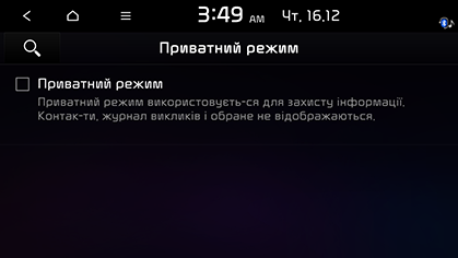 Можна налаштувати приватний режим для захисту ваших персональних даних. Коли приватний режим увімкнений, контакти, історія викликів, вибране та повідомлення не відображаються.