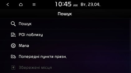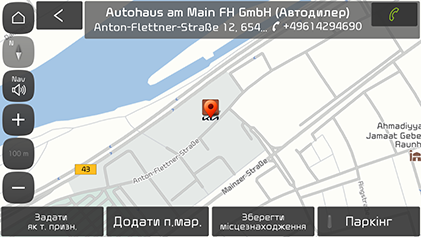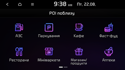 Поточне полож.: пошук точок інтересу поблизу від поточного місцезнаходження автомобіля.