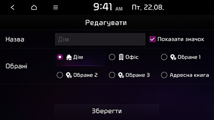 Назва: введіть назву збереженого місця. Назви місць у розділі Дім та Офіс змінювати неможливо.
