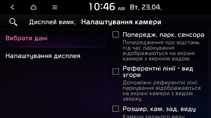 Вибрати дані: налаштування опцій допомоги під час паркування.