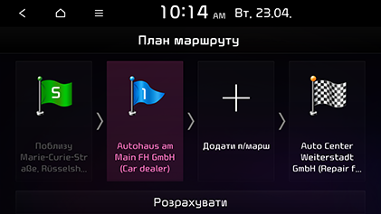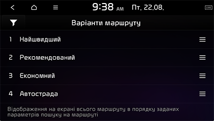 Ви можете змінювати параметри маршруту відповідно до своїх потреб. Переконайтеся, що система підключена до мережі. Варіанти маршруту доступні лише за наявності встановленого місця призначення.