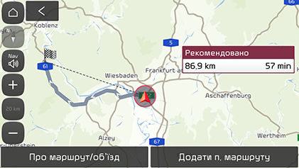 Про маршрут / об’їзд: відображення інформації маршруту і вибір вулиць для уникання.
