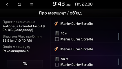 Натисніть NAV > Огляд маршруту > Про маршрут / об’їзд.