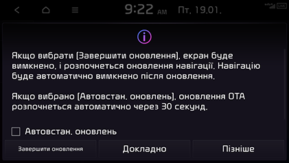 Система автоматично вимикається після завершення оновлення. Ви можете виходити з автомобіля й не чекати завершення оновлення.