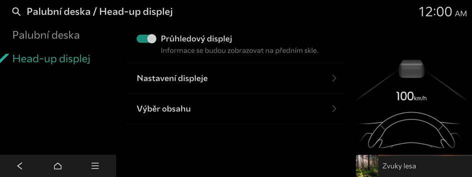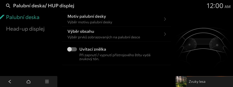 - Na domovské obrazovce stiskněte Nastavení ▶ Palubní deska / Head-up displej.