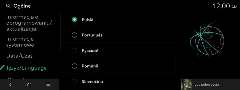 - Zmiana języka systemu nie wpływa na wyświetlanie innych unikalnych danych, takich jak nazwa pliku muzycznego MP3.