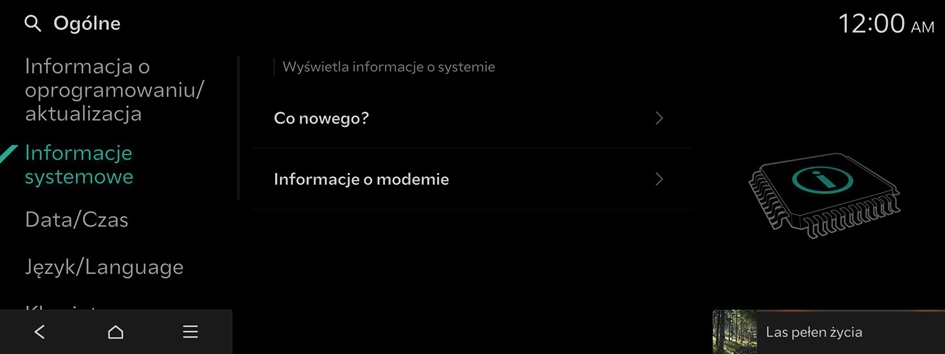 Konfiguracja daty, godziny, języka i innych ustawień. Umożliwia również sprawdzenie informacji o systemie.