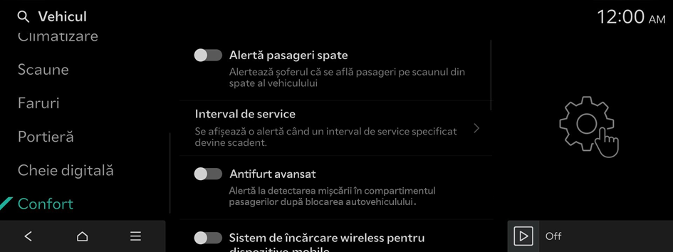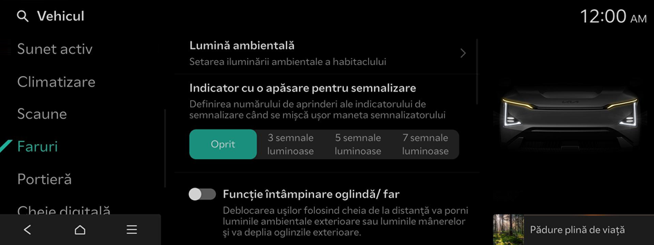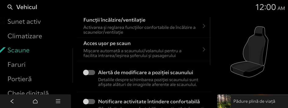 - Setările disponibile pot varia în funcție de modelul și specificațiile vehiculului.