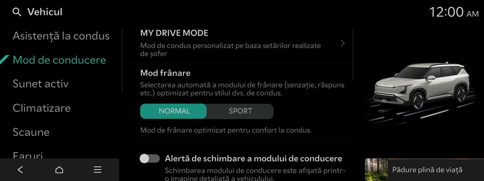 Schimbarea modului de conducere este afişată printr-o imagine detaliată a vehiculului.